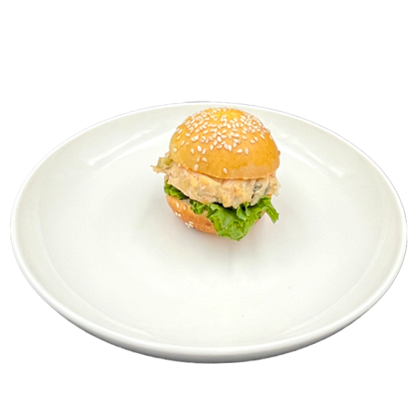 نان دست ساز، چیکن برگر دست ساز، پنیر گودا،کاهو و گوجه و سس مخصوص